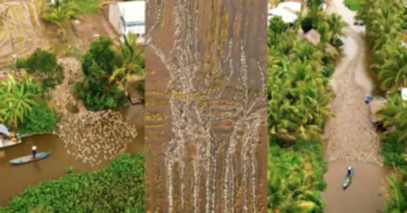 Nhìn từ trên cao qua ống kính flycam, hình ảnh quê hương miền Tây xuất hiện bình yên và nên thơ một cách lạ thường. Chính sự chân thực này đã khiến nhiều người xem cảm thấy an yên, như được trở về với những kỷ niệm xưa cũ.