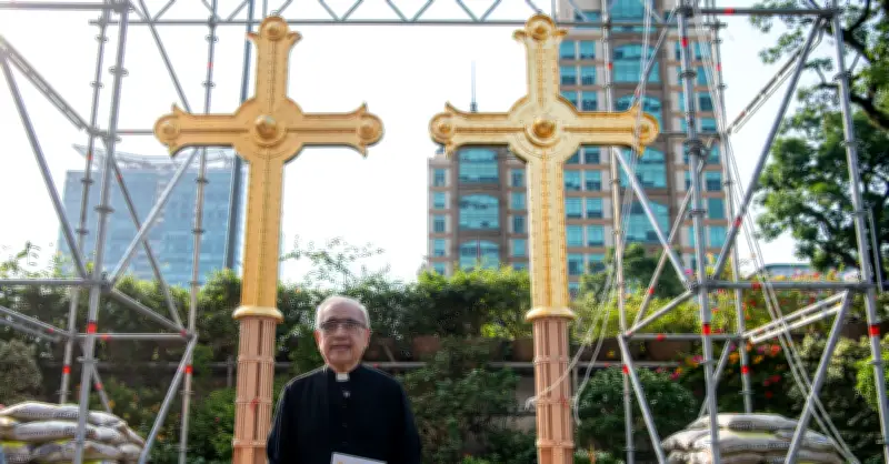 Hai thánh giá đã được trưng bày tại nhà thờ Đức Bà từ đầu tháng 12/2025 để người dân chiêm ngưỡng trước khi lắp đặt.